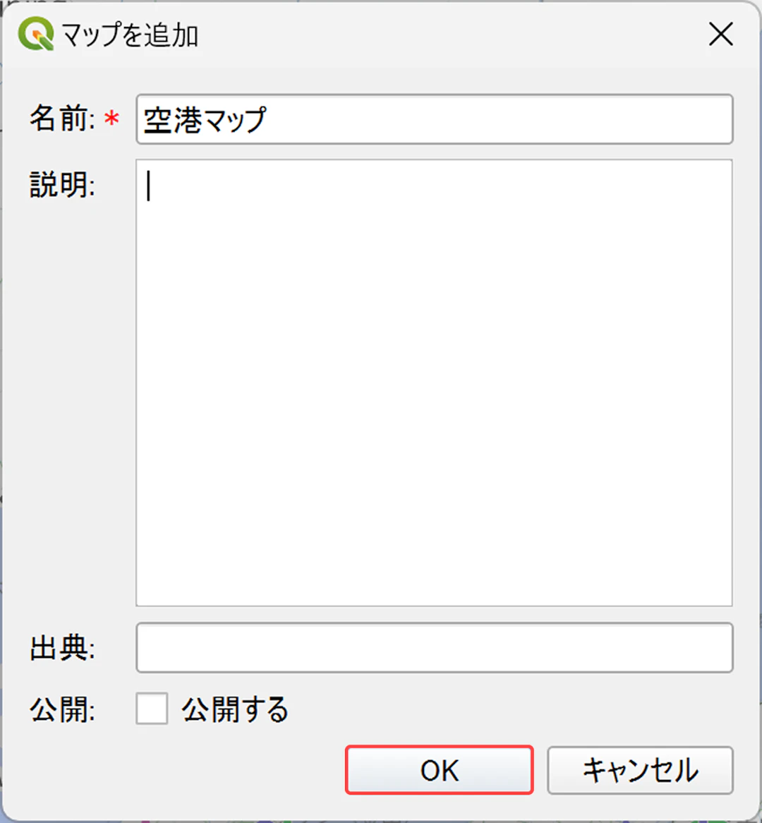 マップ名などを設定し、[OK]をクリックします。