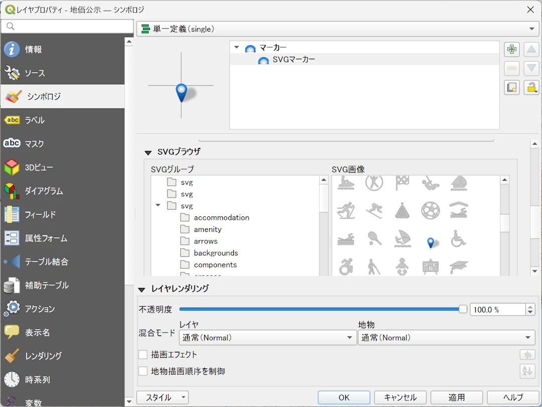 QGISで地図を作るとき、ポイントデータをわかりやすく見せるために、シンプルマーカーだけでなく画像アイコンやSVGアイコンを使いたくなる場面は多いのではないでしょうか。たとえば、観光スポットをピクトグラムで表現したり、設備の種類ごとに独自アイコンを使い分けたりすると、地図の意図がひと目で伝わりやすくなります。